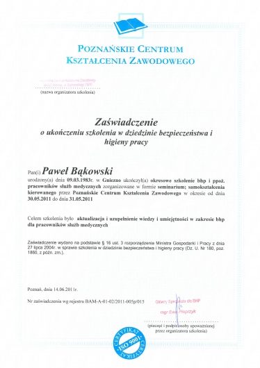 Jak Paweł Bąkowski umawia wizyty?Paweł Bąkowski używa kalendarza ZnanyLekarz, dlatego na stronie widzisz aktualne terminy. Wystarczy, że wybierzesz datę i godzinę, które odpowiadają Ci najbardziej. Umawianie wizyty jest darmowe, a tuż przed terminem wyślemy Ci przypomnienie.