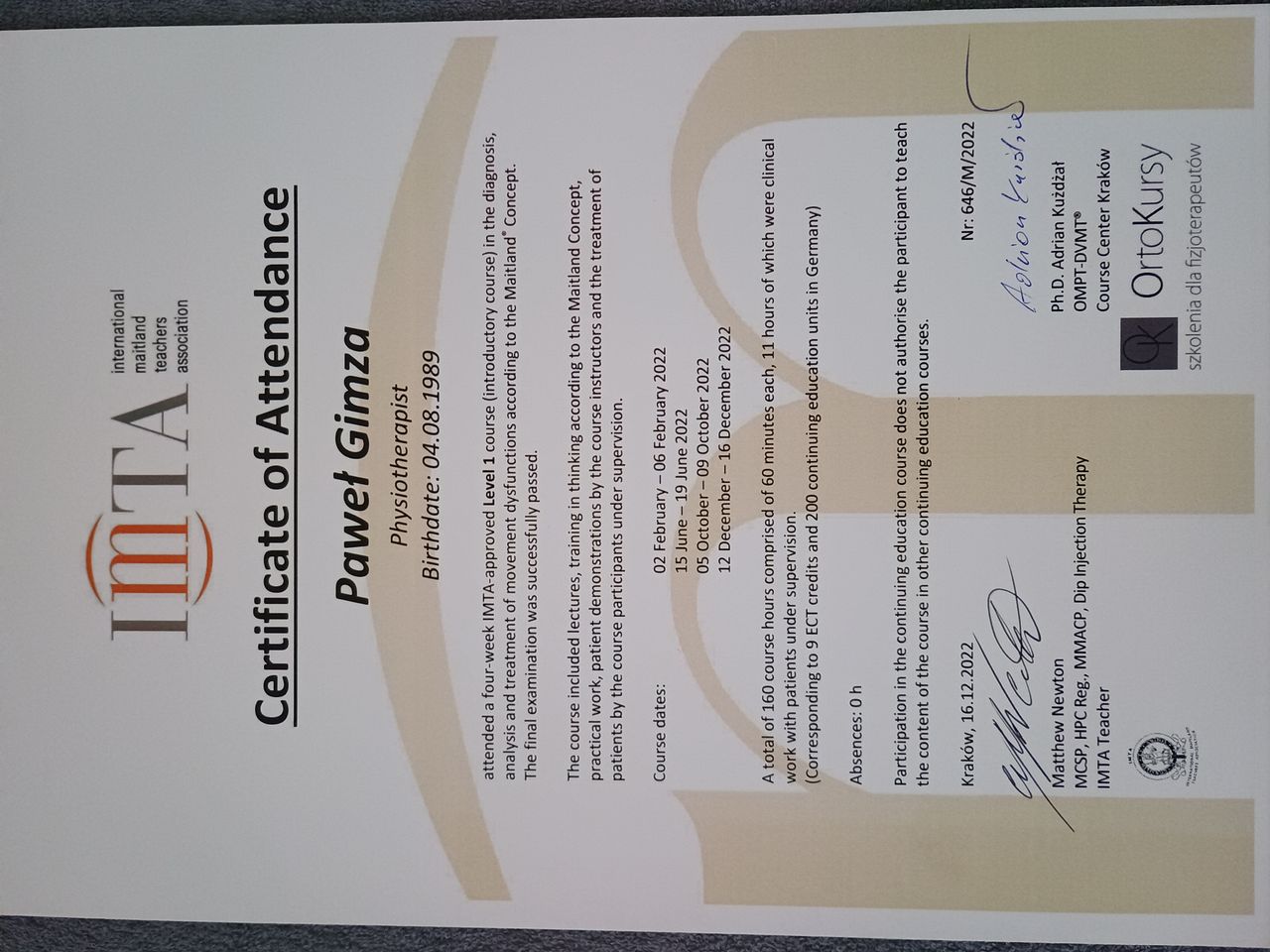 Witajcie, nazywam się Paweł Gimza i jestem fizjoterapeutą oraz dyplomowanym masażystą. Na co dzień pomagam pacjentom ortopedycznym, dzieciom i młodzieży z wadami postawy oraz wykonuje różnego rodzaju masaże lecznicze. Dzięki wieloletniemu doświadczeniu oraz ciągłemu kształceniu w dziedzinie rehabilitacji wyspecjalizowałem się w fizjoterapii ortopedyczno-sportowej. Jeśli masz problemy z bólem pleców lub stawów, a może czujesz że twoje zmęczone mięśnie potrzebują pomocy?, zapraszam Cię do mojego gabinetu. Znajdziemy rozwiązanie twojego problemu i opracujemy plan aby twoje dolegliwości nie powracały. Dokładny wywiad i szczegółowa diagnostyka zbliżą nas do poznania źródła twoich dolegliwości bólowych. Poniżej przedstawiam przykładowe problemy z którymi zgłaszają się do mnie pacjenci, jeśli jesteś w tej grupie, mogę pomóc ;)