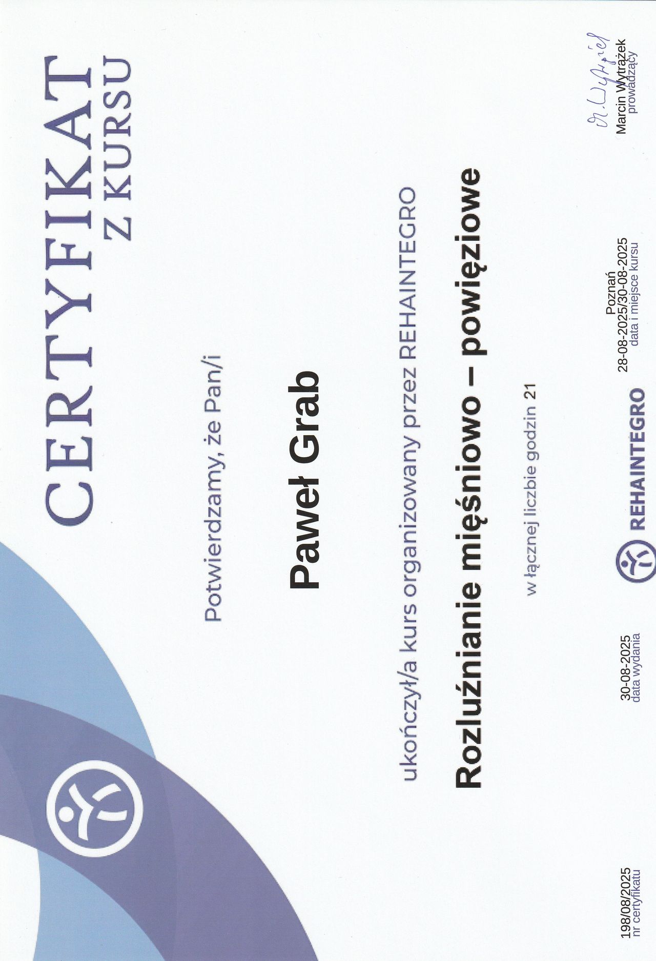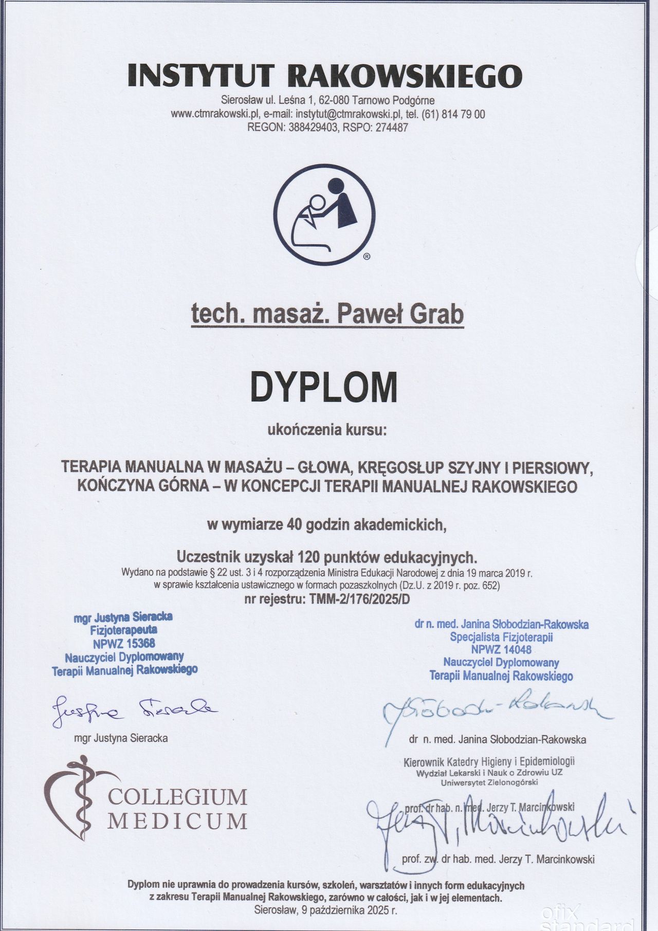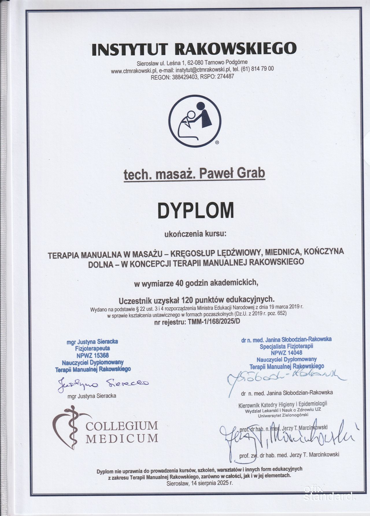 Jestem technikiem masażystą, terapeutą manualnym i trenerem medycznym.