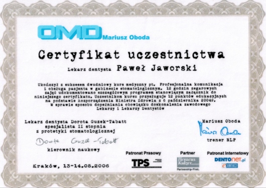 Dr Paweł Jaworski jest cudownym lekarzem, wszystko szczegółowo tłumaczy a leczenie u niego jest zawsze na najwyższym poziomie i nigdy nie boli :) Poczucie humoru doktora i super atmosfera w gabinecie powodują, że chce się wracać