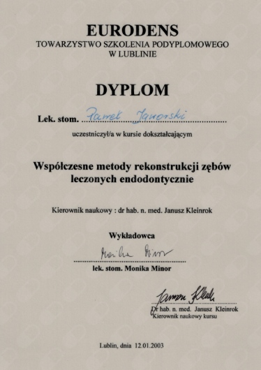 W 2009 roku obronił rozprawę doktorską w Zakładzie Periodontologii Uniwersytetu Medycznego w Lublinie.