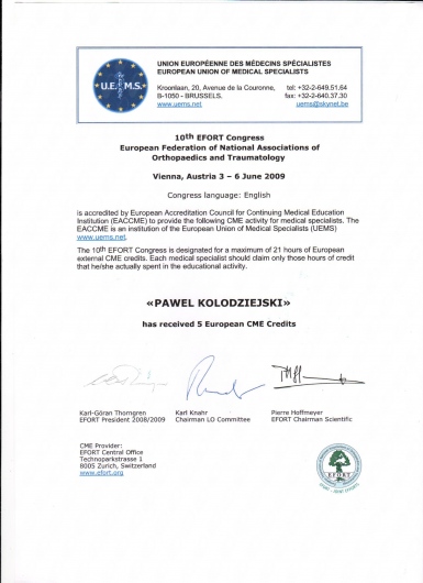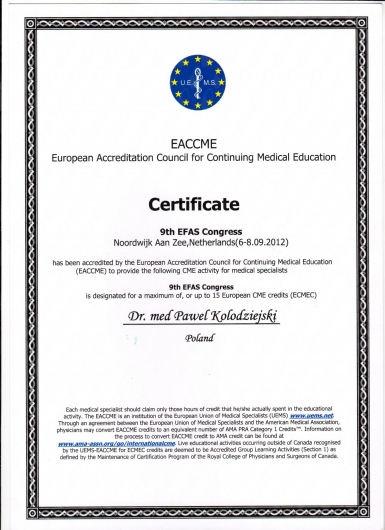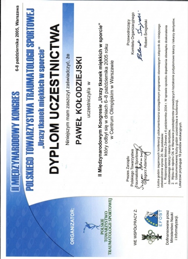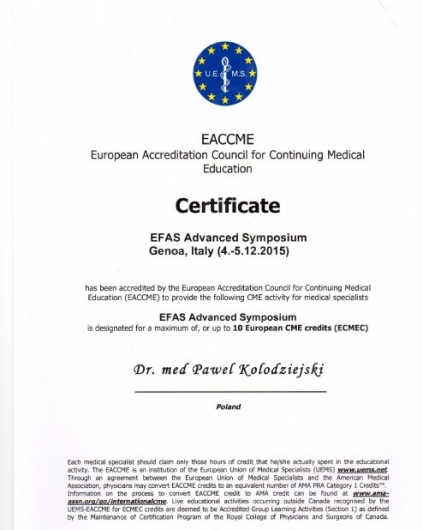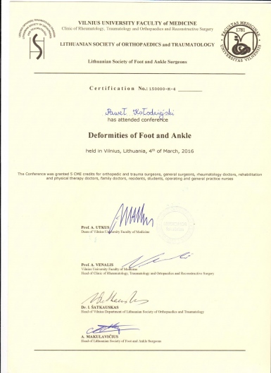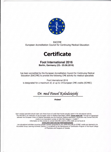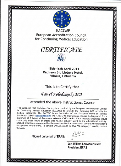 Członek Europejskiego Towarzystwa Stopy i Stawu Skokowo-Goleniowego (EFAS)