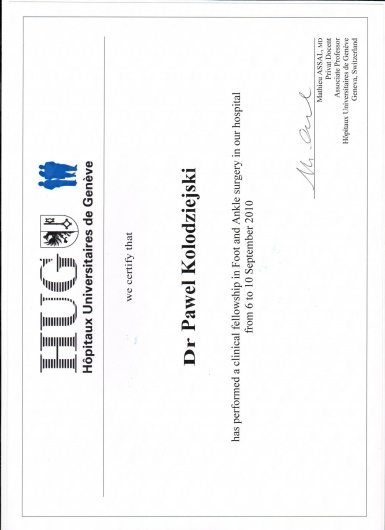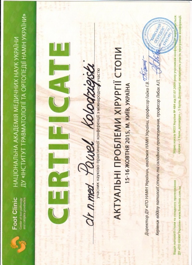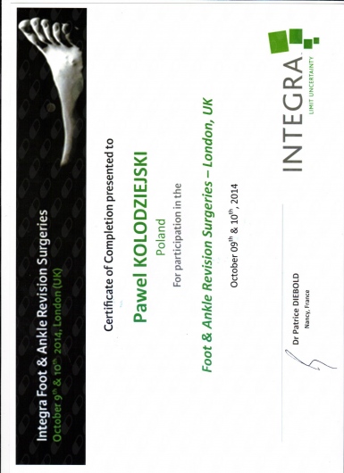 Instruktor i współtwórca Centrum Szkoleniowego z chirurgii stopy na Polskę i Europę Środkowo-Wschodnią