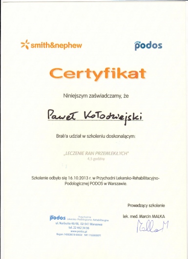 Lekarza, który spośród innych ortopedów, zainteresował sie moim problemem ze stopą, widyje mi sie, ze dużą wiedzę na ten temat , ale mam nadzieję, że z problemem bólem stopy , w niedalekiej przyszłości uda mi się zapomnieć