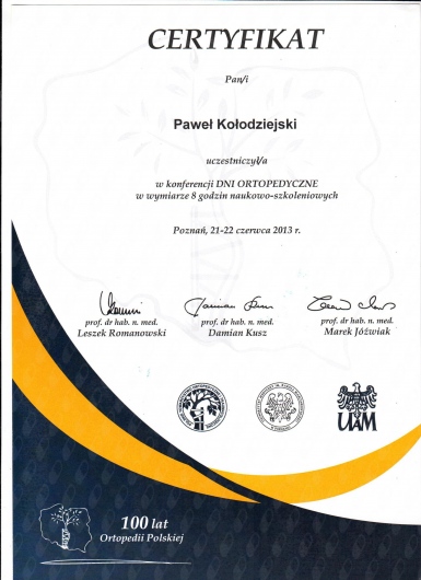 Po wielu wizytach u innych ortopedów, w końcu po wizycie u dr Kołodziejskiego dowiedziałem się co należy zrobić z moim problemem.