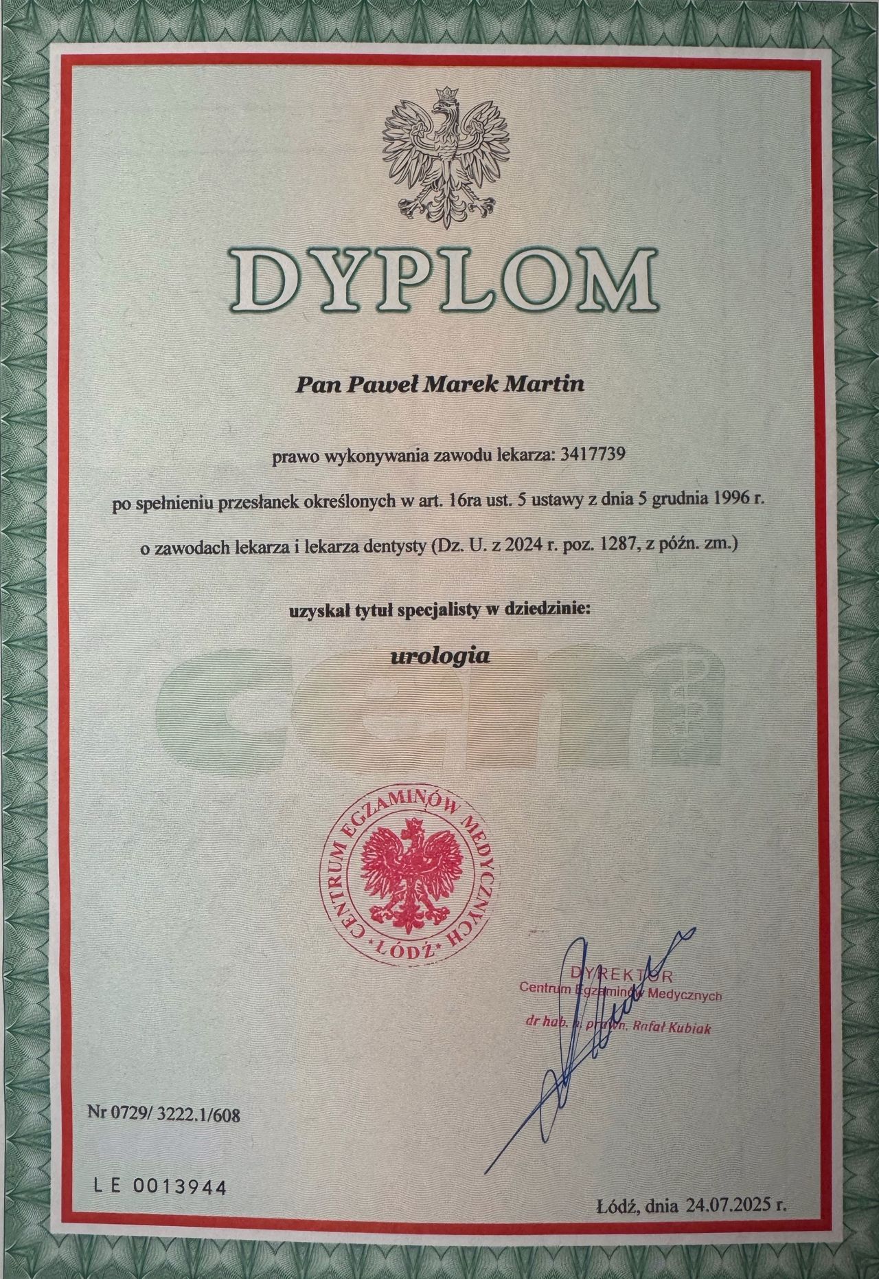 Jaki jest zakres porad oferowanych przez Paweł Martin?Paweł Martin to urolog. Na podstawie swojego doświadczenia i wykształcenia Paweł Martin oferuje usługi takie jak: konsultacja urologiczna, Konsultacja kwalifikująca do zabiegu (plastyka stulejki i wędzidełka), Operacja stulejki, konsultacja urologiczna + USG transrektalne prostaty (TRUS), Konsultacja urologiczna + USG.