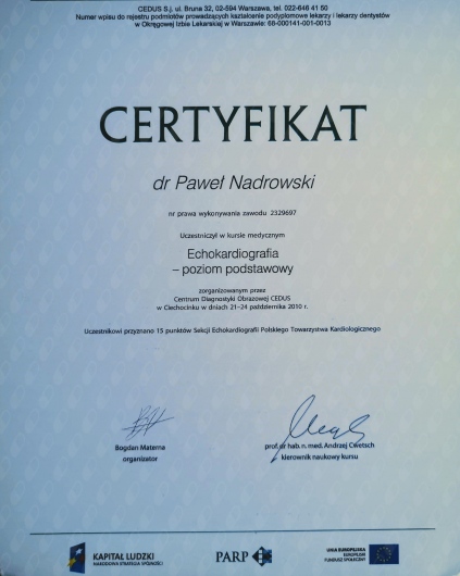 • Specjalistyczny Gabinet Kardiologiczny dr n.med. Paweł Nadrowski • ECHO serca •