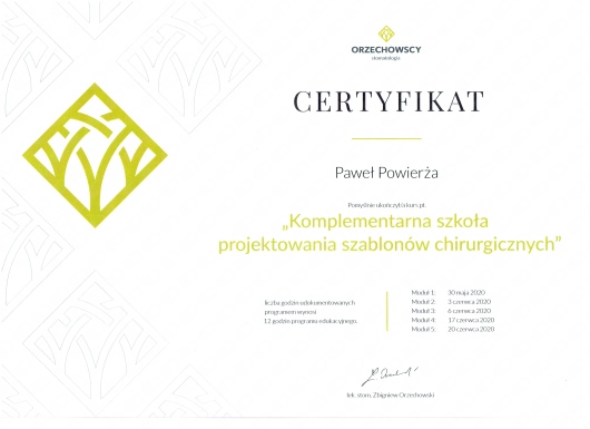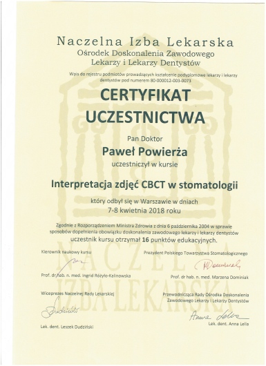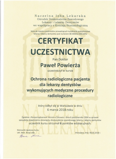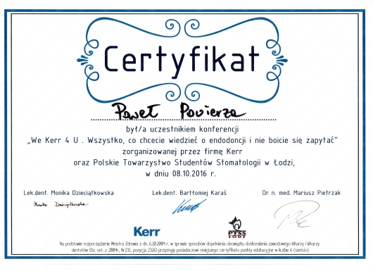 Swoją wiedzę poszerzam uczestnicząc w licznych kursach oraz konferencjach naukowych.