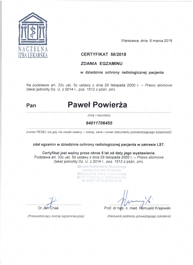Jak Paweł Powierża umawia wizyty?Paweł Powierża używa kalendarza ZnanyLekarz, dlatego na stronie widzisz aktualne terminy. Wystarczy, że wybierzesz datę i godzinę, które odpowiadają Ci najbardziej. Umawianie wizyty jest darmowe, a tuż przed terminem wyślemy Ci przypomnienie.