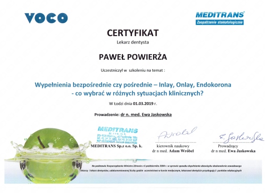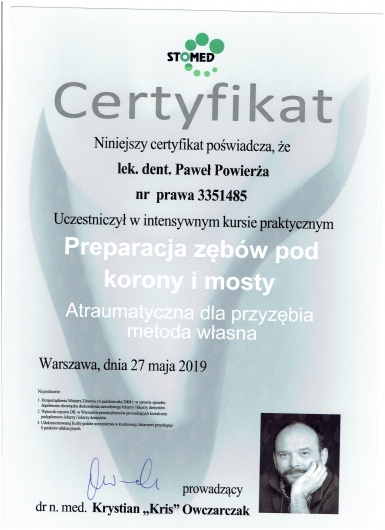 Będąc w trakcie leczenia protetycznego w innym mieście i u innego zespołu specjalistów trafiłem do doktora po nowy mostek tymczasowy, który uległ pęknięciu. Praca zrealizowana bardzo dobrze - mostek przygotowany cyfrowo bez konieczności pobierania wycisków, dobry kolor, dobre dopasowanie, mostek wzmocniony i pozbawiający mnie dyskomfortu. Warto pochwalić bardzo dobrą atmosferę i sympatyczny zespół w całym gabinecie, którego będę na pewno polecał znajomym z Łodzi. Pozdrawiam.