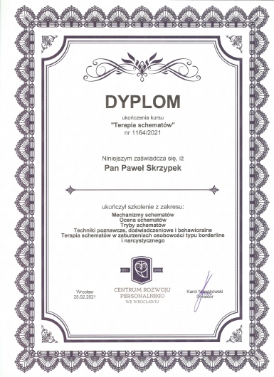 Jest to profesjonalista ,który potrafi wesprzeć Nas mentalnie,pokazać jak pracować nad sobą by osiągać pełnię Naszego potencjału jak mierzyć sie z codziennym życiem ,emocjami jak terapia wpływa na Nas i nasze życie ,Pan Paweł pomógł zbudować mi pewność samego siebie ,dojrzałość odpowiedzialność za samego siebie !