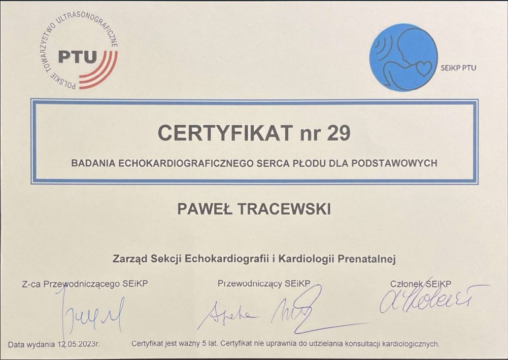 Jaki jest zakres porad oferowanych przez Paweł Tracewski?Paweł Tracewski to kardiolog dziecięcy. Na podstawie swojego doświadczenia i wykształcenia Paweł Tracewski oferuje usługi takie jak: konsultacja kardiologa dziecięcego, Echo Serca Płodu (konsultacja + badanie echokardiograficzne serca płodu), Echo Serca Płodu ciąża bliźniacza lub mnoga (konsultacja + badanie echokardiograficzne serca płodu), ECHO serca.