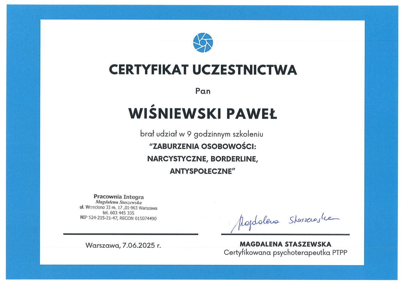 Pan Paweł jest bardzo zaangażowanym terapeutą, spokojnym i cierpliwym. Człowiek w jego towarzystwie czuje, że może bez żadnego problemu się otworzyć i opowiedzieć o swoich problemach. Na wizytę jest bardzo dobrze przygotowany i widać, że ma duża wiedzę, wie jakie pytania zadawać oraz jego uwagi są bardzo trafne. Myślę, że z czystym sercem mogę polecić innym Pana Pawła