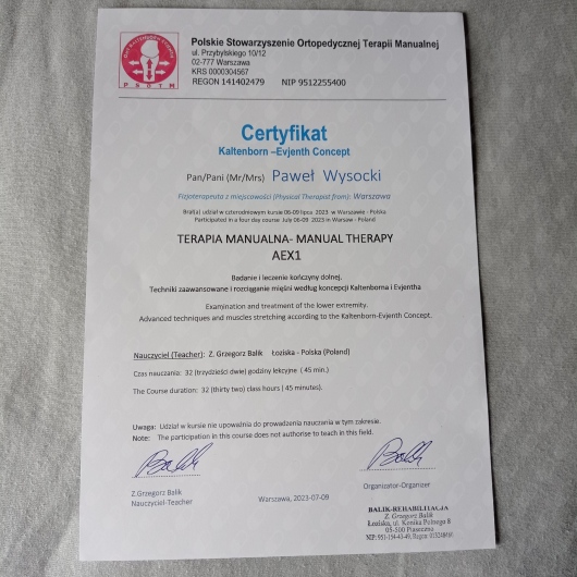 Terapia manualna według metody Kaltenborna i Evjentha (2022-2024 Zdany egzamin końcowy)