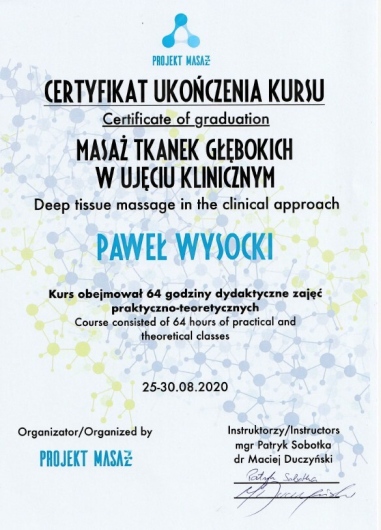 Trafiłem do Pana Pawła z polecenia i nie zawiodłem się. Dzięki świetnie przeprowadzonym zabiegom udało uwolnić się zrost blizny od ścięgna zaledwie po kilku wizytach. Polecam!!!