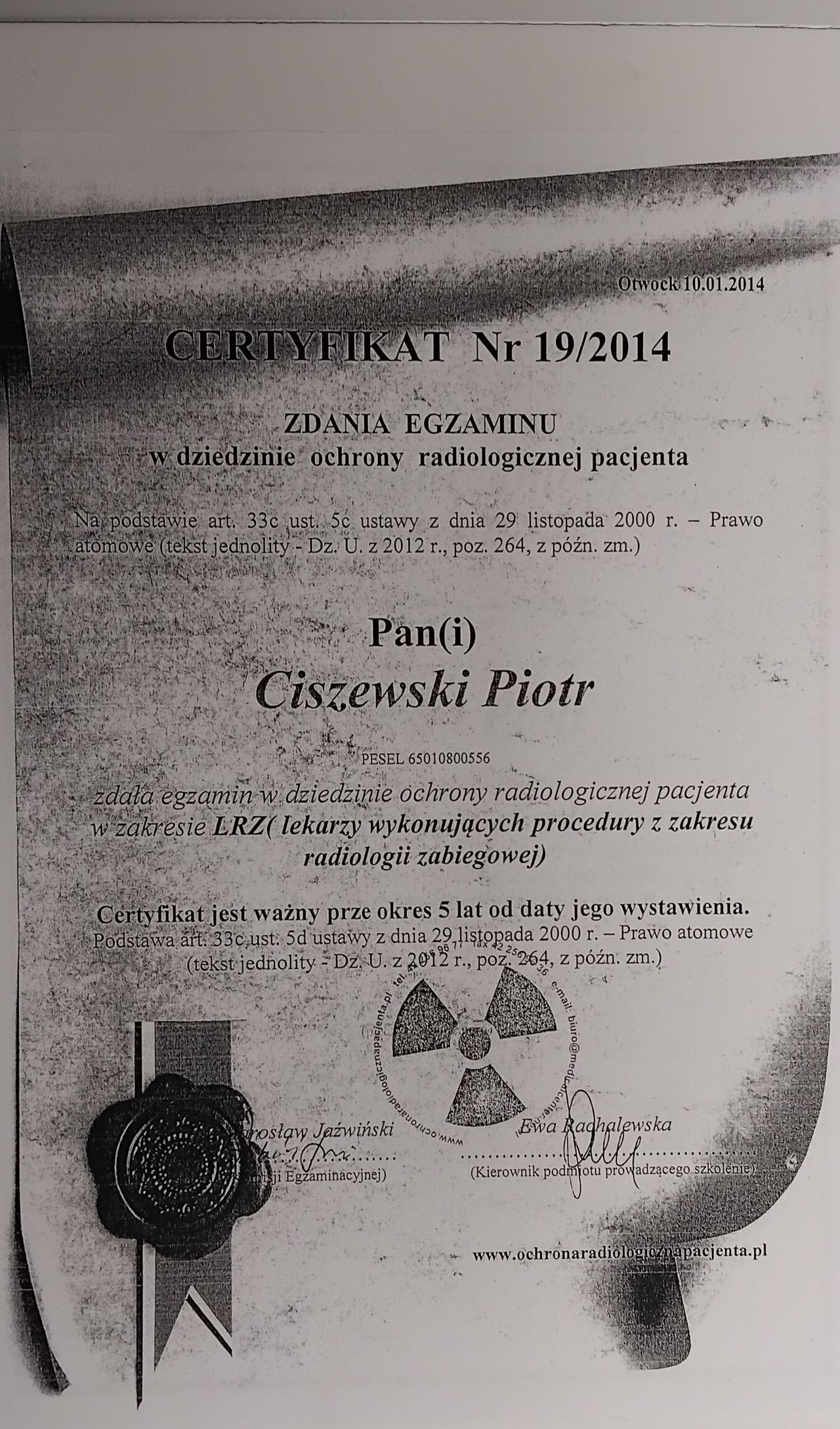 Serdeczne podziękowania dla dr.P.Ciszewskiego oraz całego zespołu medycznego i pomocniczego za leczenie i wspaniałą opiekę.