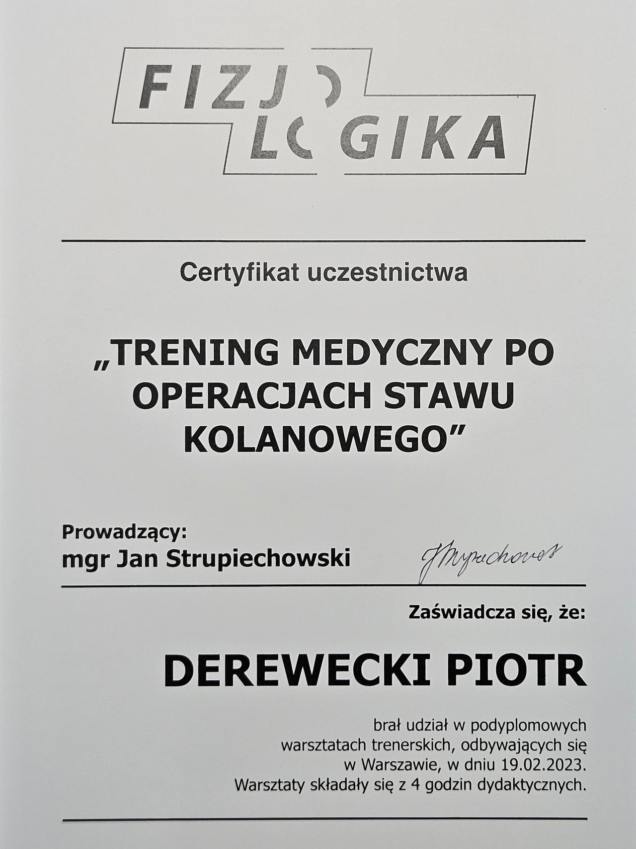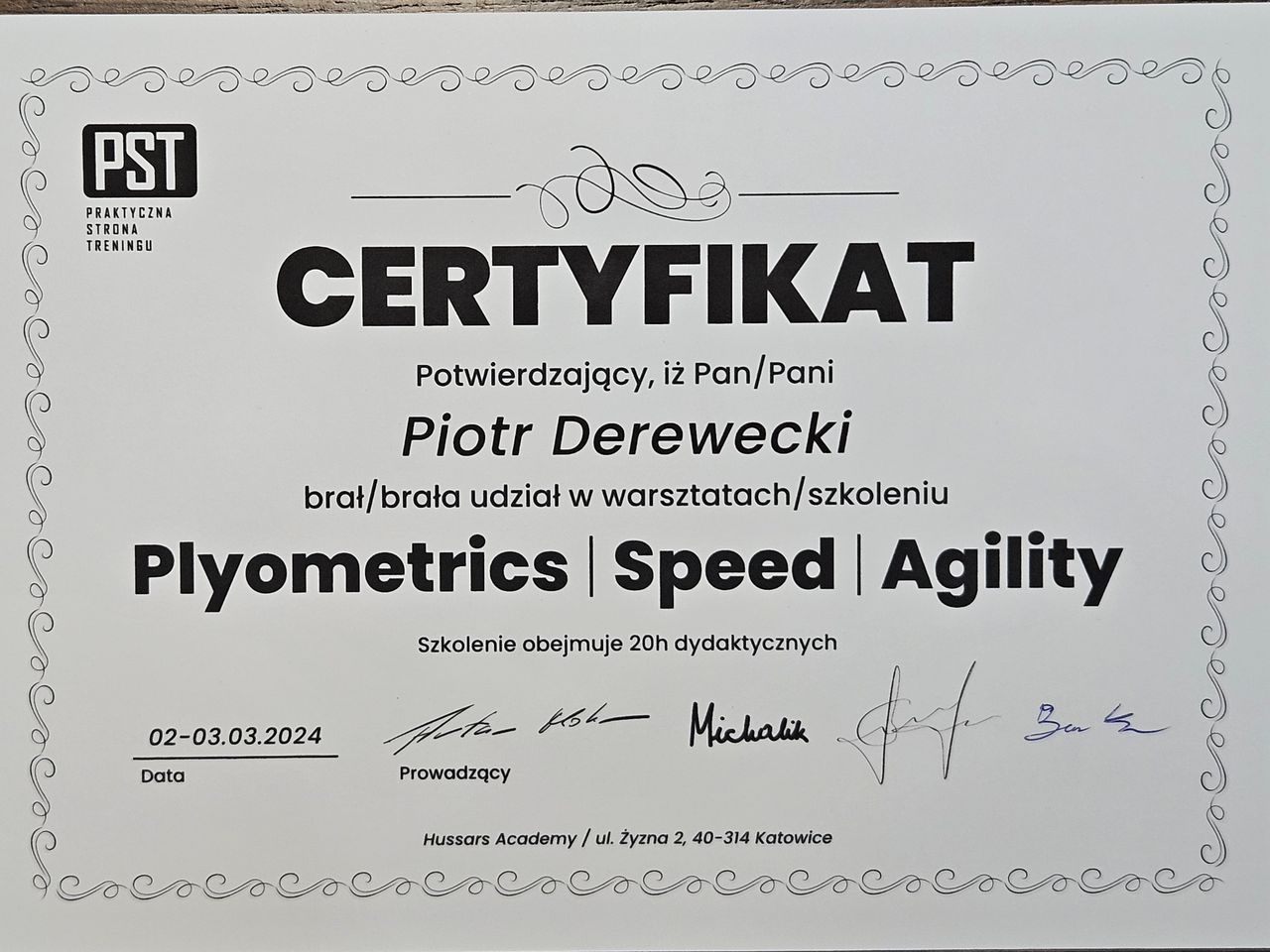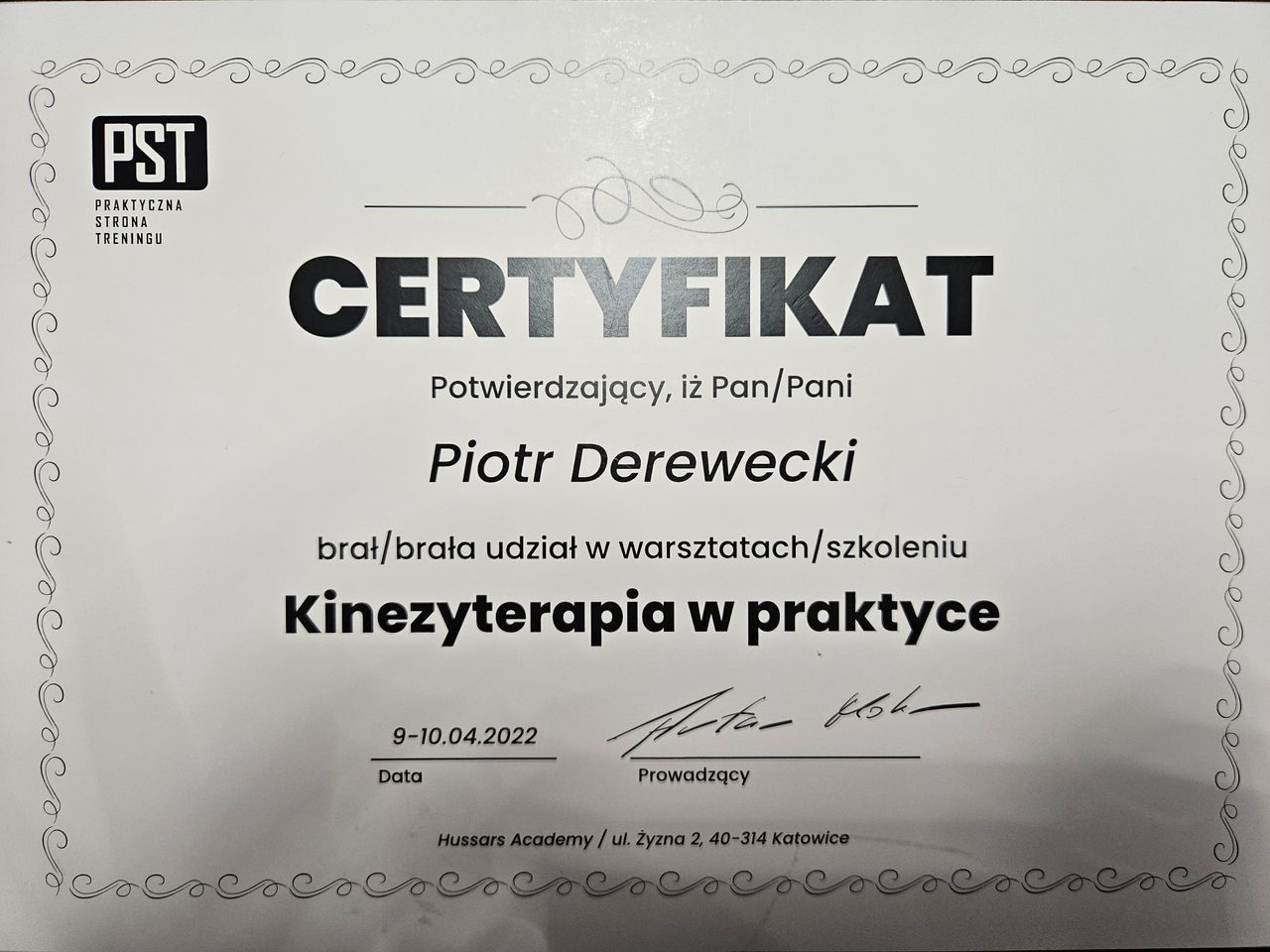 Bardzo polecam Piotra jako trenera, nie tylko ze względu na umiejętności merytoryczne, rozległą wiedzę i umiejętność jej zastosowania w zróżnicowanych sytuacjach zarówno po przebytej kontuzji, jak i podniesieniu ogólnej sprawności fizycznej, ale również mającego przyjazne usposobienie, świetne podejście do pacjenta oraz poczucie humoru z którym każdy trening będzie niezapomniany. Potrafiącego zmotywować do ruchu niezależnie od twojej sytuacji i zaangażowania.