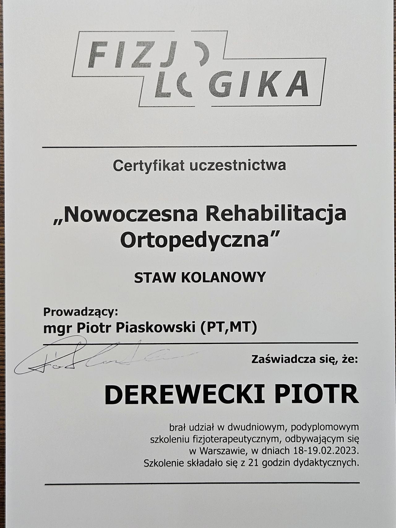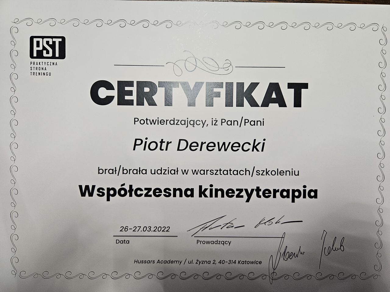 Jaki jest zakres porad oferowanych przez Piotr Derewecki?Piotr Derewecki to fizjoterapeuta. Na podstawie swojego doświadczenia i wykształcenia Piotr Derewecki oferuje usługi takie jak: konsultacja fizjoterapeutyczna, badanie i fizjoterapia funkcjonalna w uszkodzeniach stawu kolanowego i barkowego, Trening medyczny, fizjoterapia, Fizjoterapia pourazowa, fizjoterapia przed- i pooperacyjna, terapia wad postawy, masaż całościowy – terapia manualna, terapia przeciwbólowa, kinezyterapia.