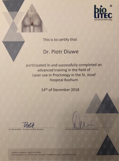 W 2019 r. ukończył pierwsze w Polsce studia podyplomowe w zakresie „Koloproktologii praktycznej” na Uniwersytecie Jagiellońskim w Krakowie.