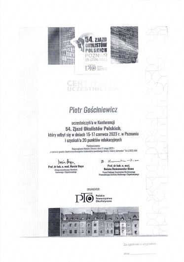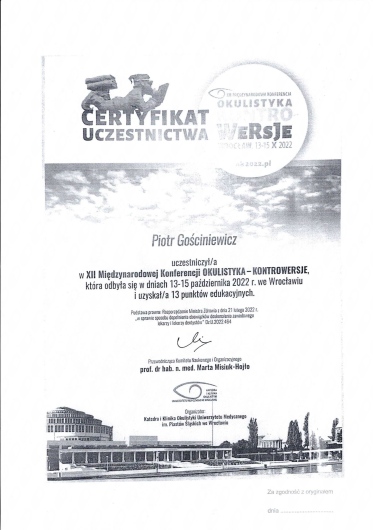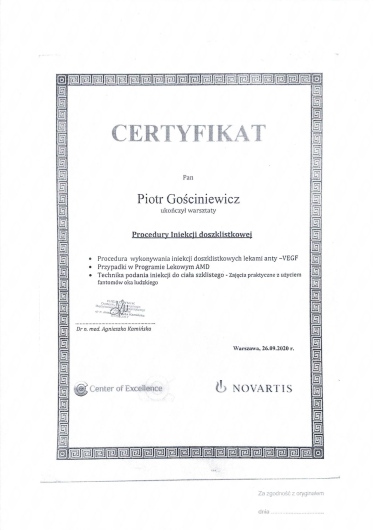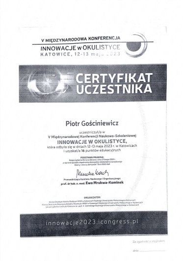 Jaki jest zakres porad oferowanych przez Piotr Gościniewicz?Piotr Gościniewicz to okulista. Na podstawie swojego doświadczenia i wykształcenia Piotr Gościniewicz oferuje usługi takie jak: konsultacja okulistyczna.