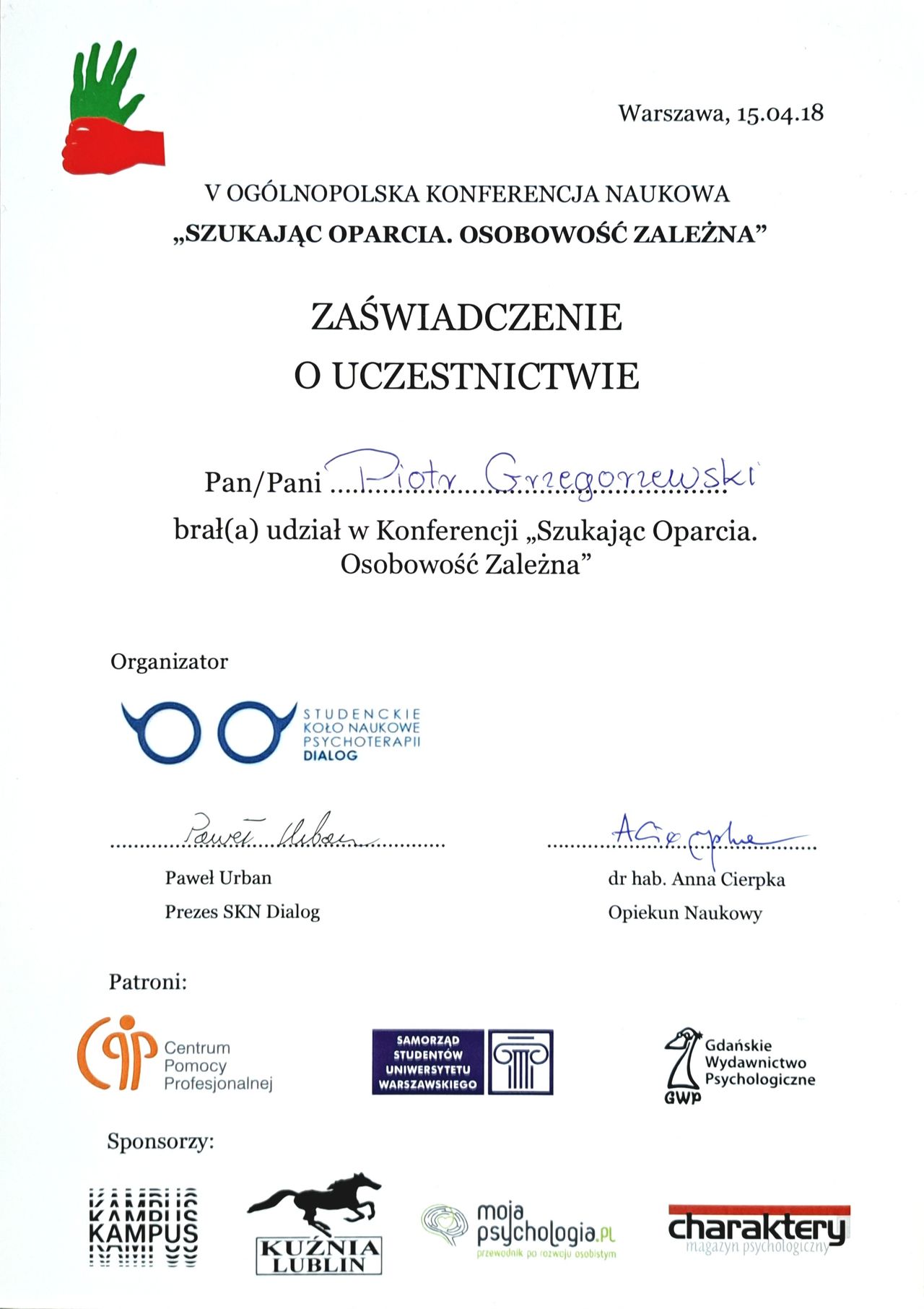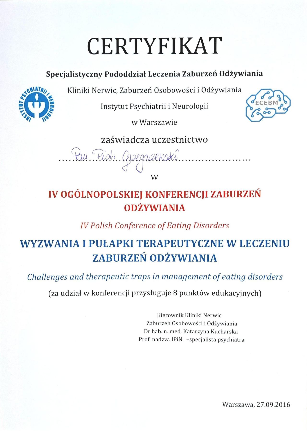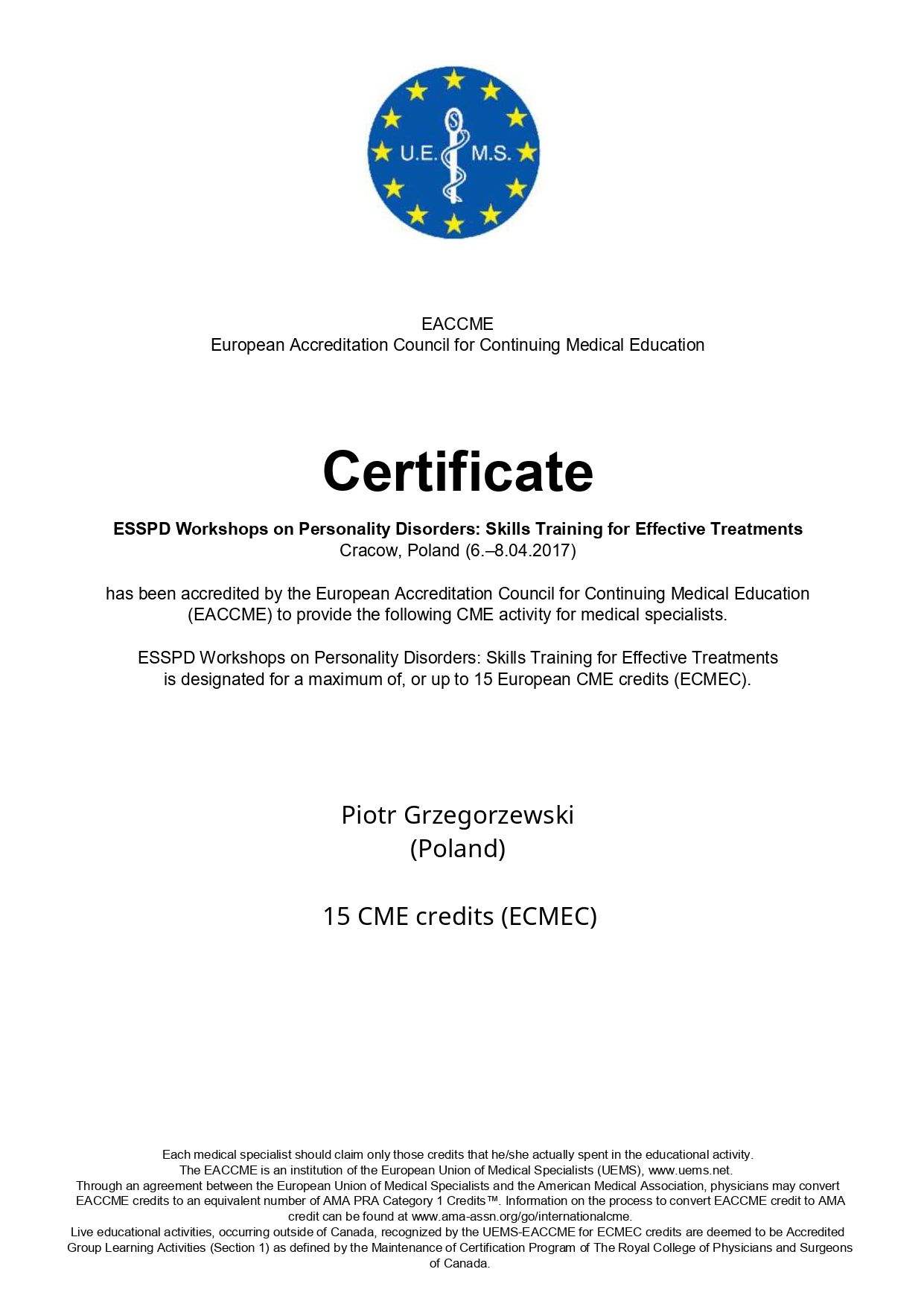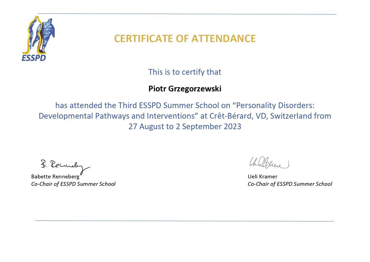 Jestem również autorem publikacji dot. zaburzenia osobowości borderline i anoreksji w renomowanych czasopismach naukowych, a także uczestnikiem licznych krajowych i zagranicznych konferencji i szkoleń diagnostycznych oraz naukowych i szkół letnich (dwukrotnie Szkoły Studiów Zaawansowanych nad Jeziorem Como i Uniwersytetu Mediolańskiego Bicocca, Włochy, a także Europejskiego Towarzystwa Badań nad Zaburzeniami Osobowości i Uniwersytetu Lozańskiego, Szwajcaria).