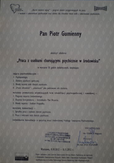 Byłem kierownikiem Ośrodka Wsparcia dla osób z zaburzeniami psychicznymi.