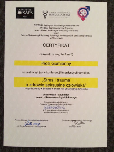 Współpracowałem z Poradnią Seksuologiczną i Patologii Współżycia w Centrum Psychoterapii SWZPZPOZ w Warszawie.