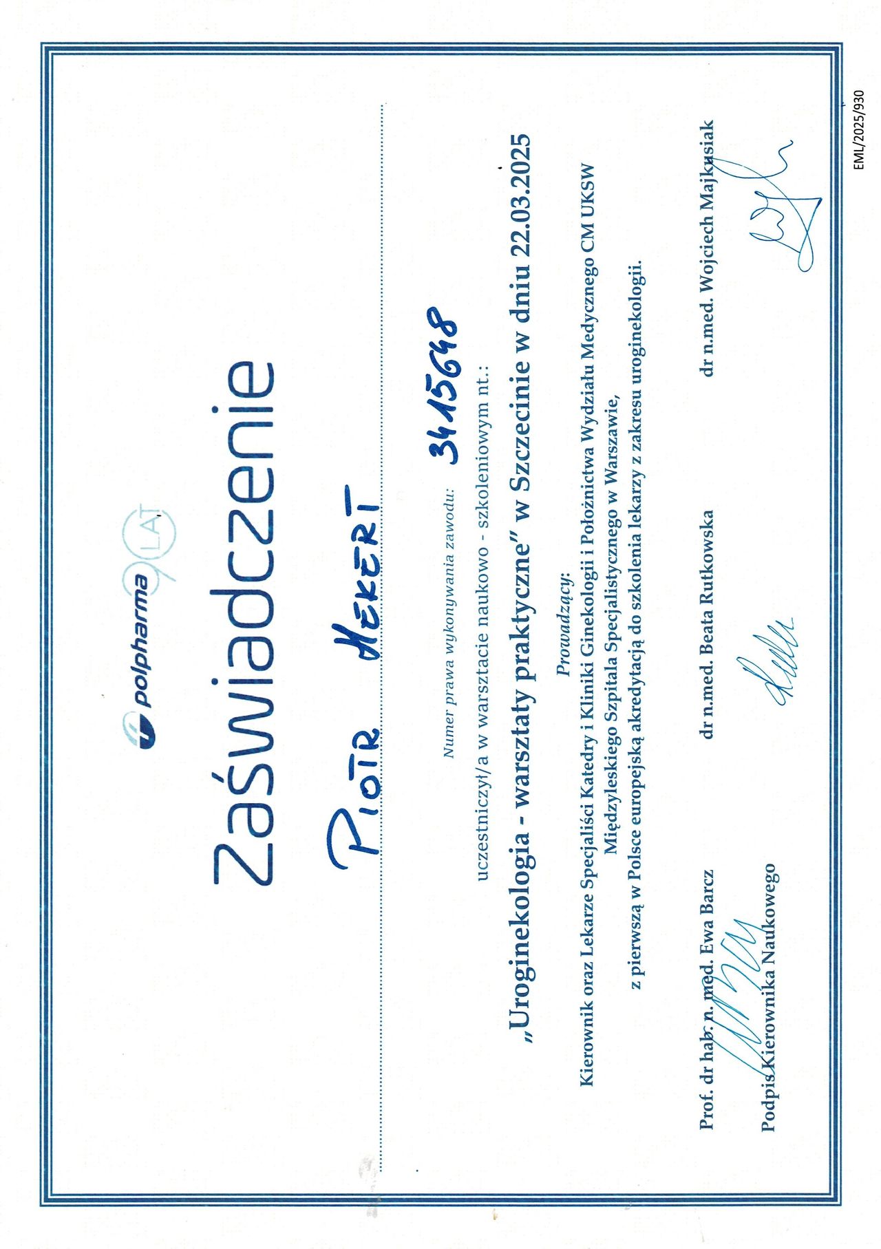 - Kurs "Uroginekologia - warsztaty praktyczne", Szczecin 22-03-2025
