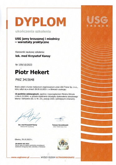 - Kurs - USG jamy brzusznej i miednicy - warsztaty praktyczne. USG Trener. Gliwice 28-29.10.2023