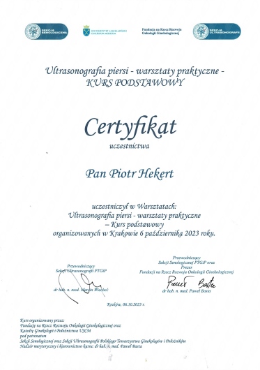 - Ultrasonografia Piersi. Warsztaty praktyczne. Kurs podstawowy PTGiP. Kraków 06.10.2023