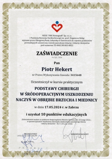 - Kurs praktyczny "Podstawy chirurgii w śródoperacynym uszkodzeniu naczyń brzucha i miednicy" Zabrze 17.05.2024
