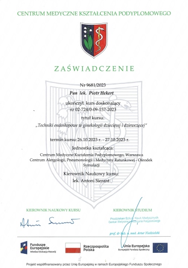 - Kurs - Techniki endoskopowe w ginekologii dziecięcej i dziewczęcej. CMKP. Warszawa 26-27.10.2023