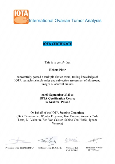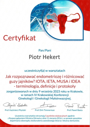 - Warsztaty "Jak rozpoznawać endometriozę i różnicować guzy jajników? IOTA, IETA, MUSA, IDEA - terminologia, definicje, protokoły" Kraków 09.09.2023