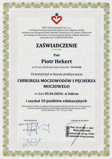 - Kurs praktyczny "Chirurgia moczowodów i pęcherza moczowego" Zabrze. 05.04.2024