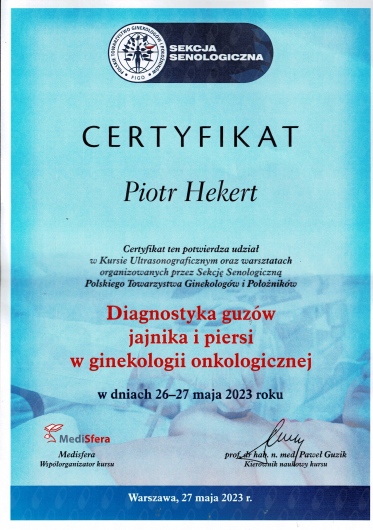 - Kurs „Diagnostyka guzów jajnika i piersi w ginekologii onkologicznej” PTGiP Warszawa 26-27.05.2023