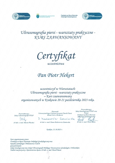 - Ultrasonografia Piersi. Warsztaty praktyczne. Kurs zaawansowany PTGiP. Kraków 20-21.10.2023