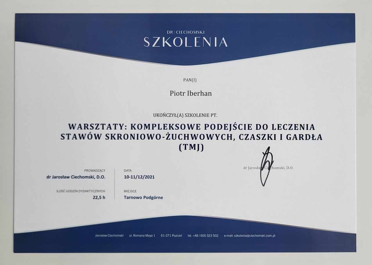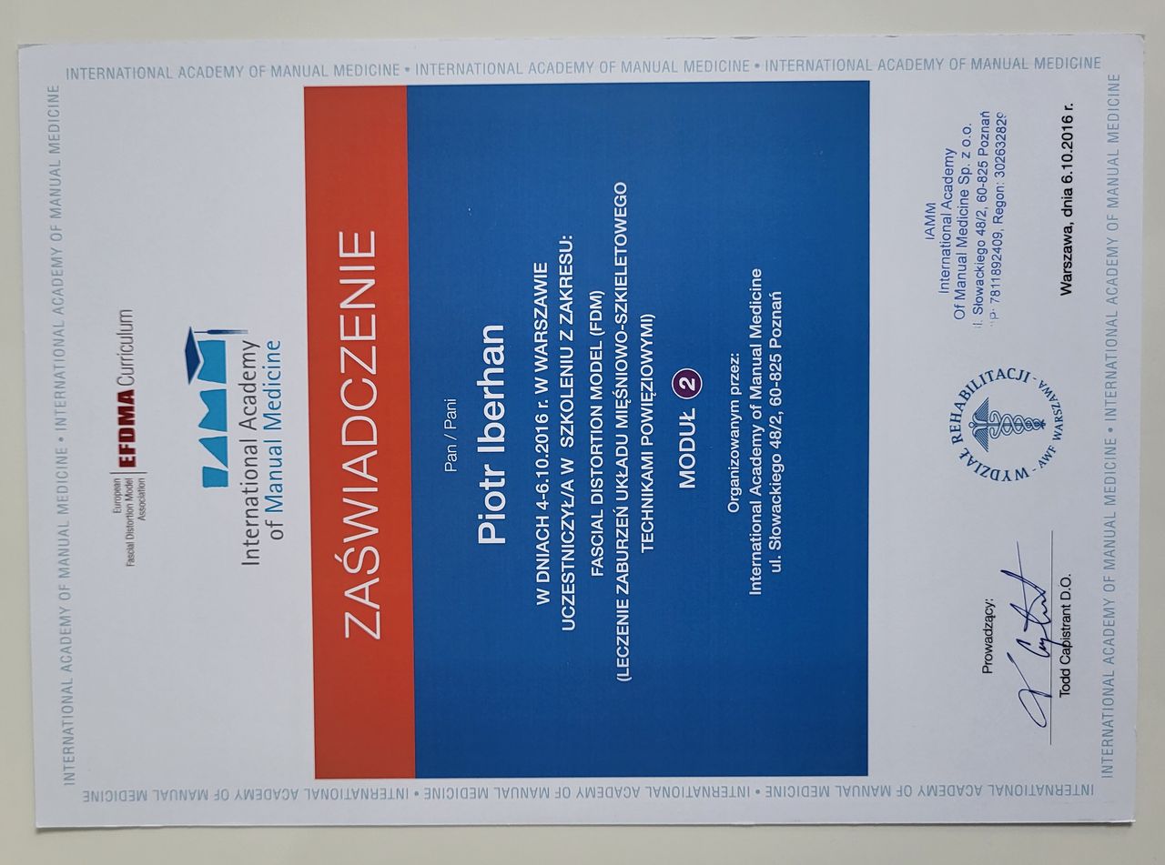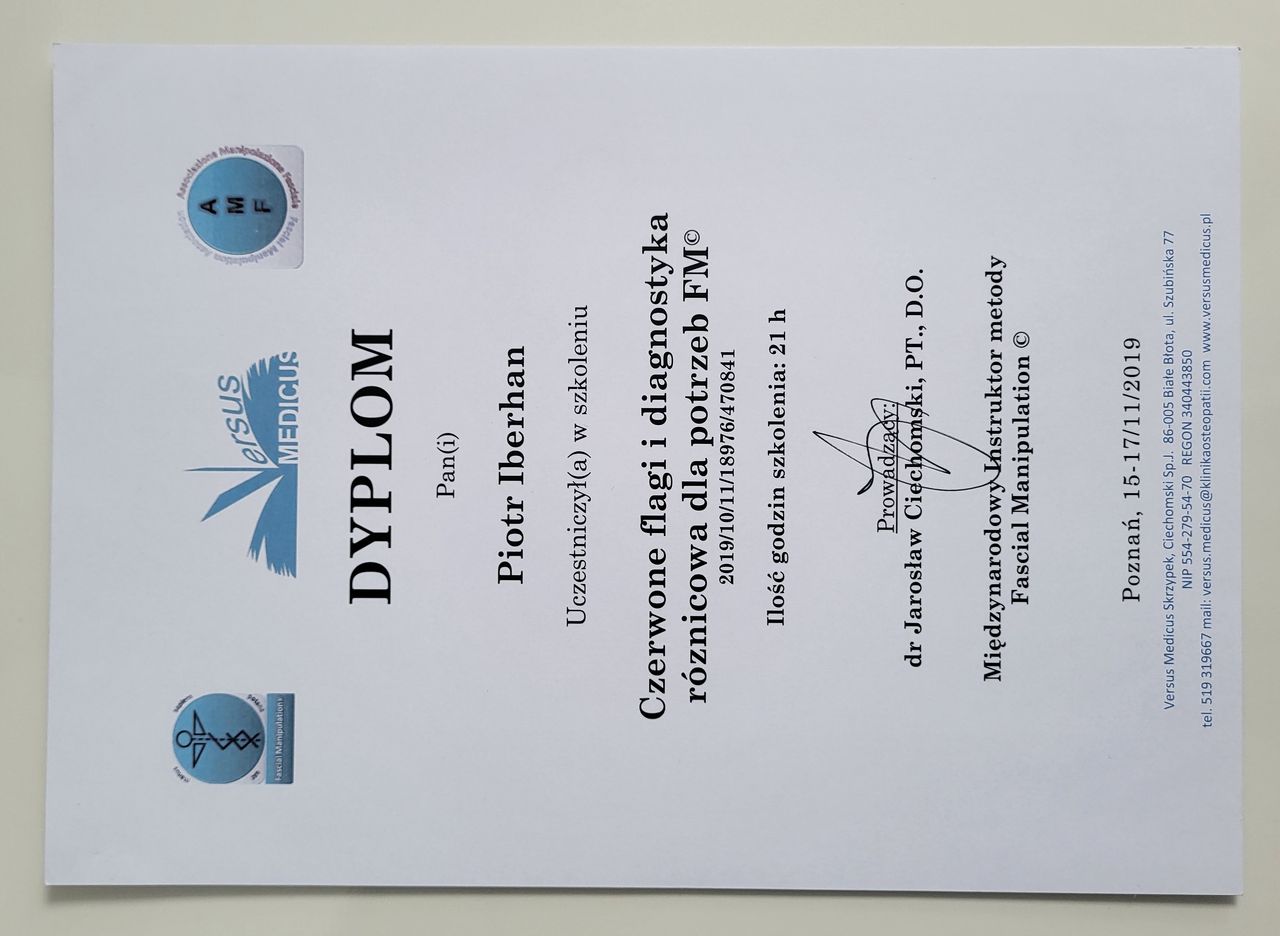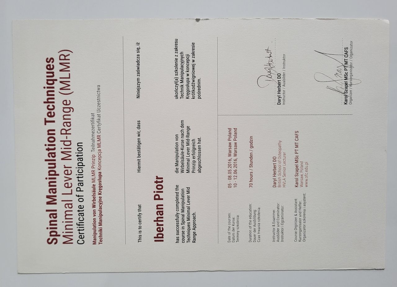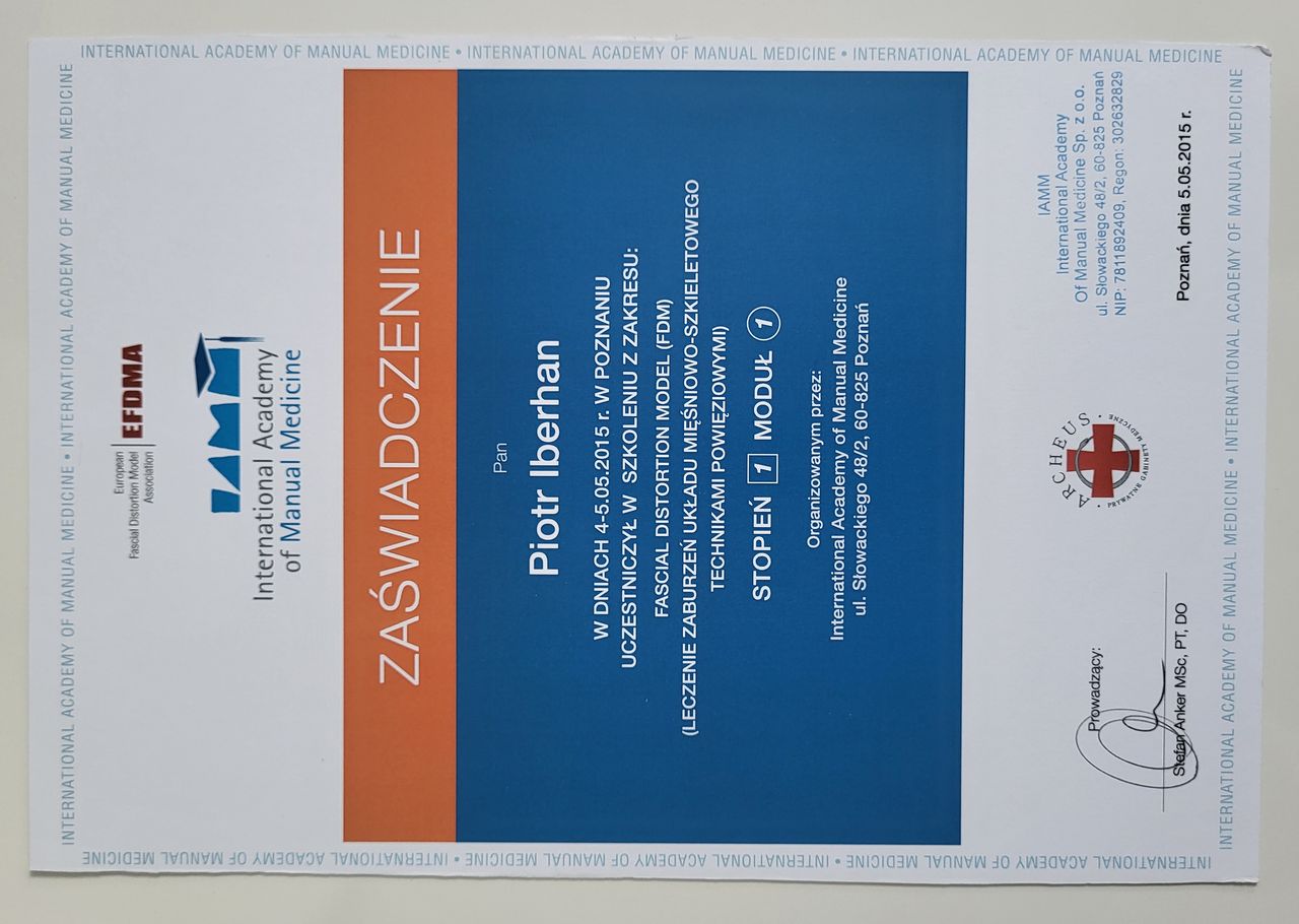 Poza specjalistycznymi szkoleniami w 2025r. zdecydowałem się na kolejny krok w mojej praktyce zawodowej i rozpocząłem studia na Akademii Osteopatii w Poznaniu.