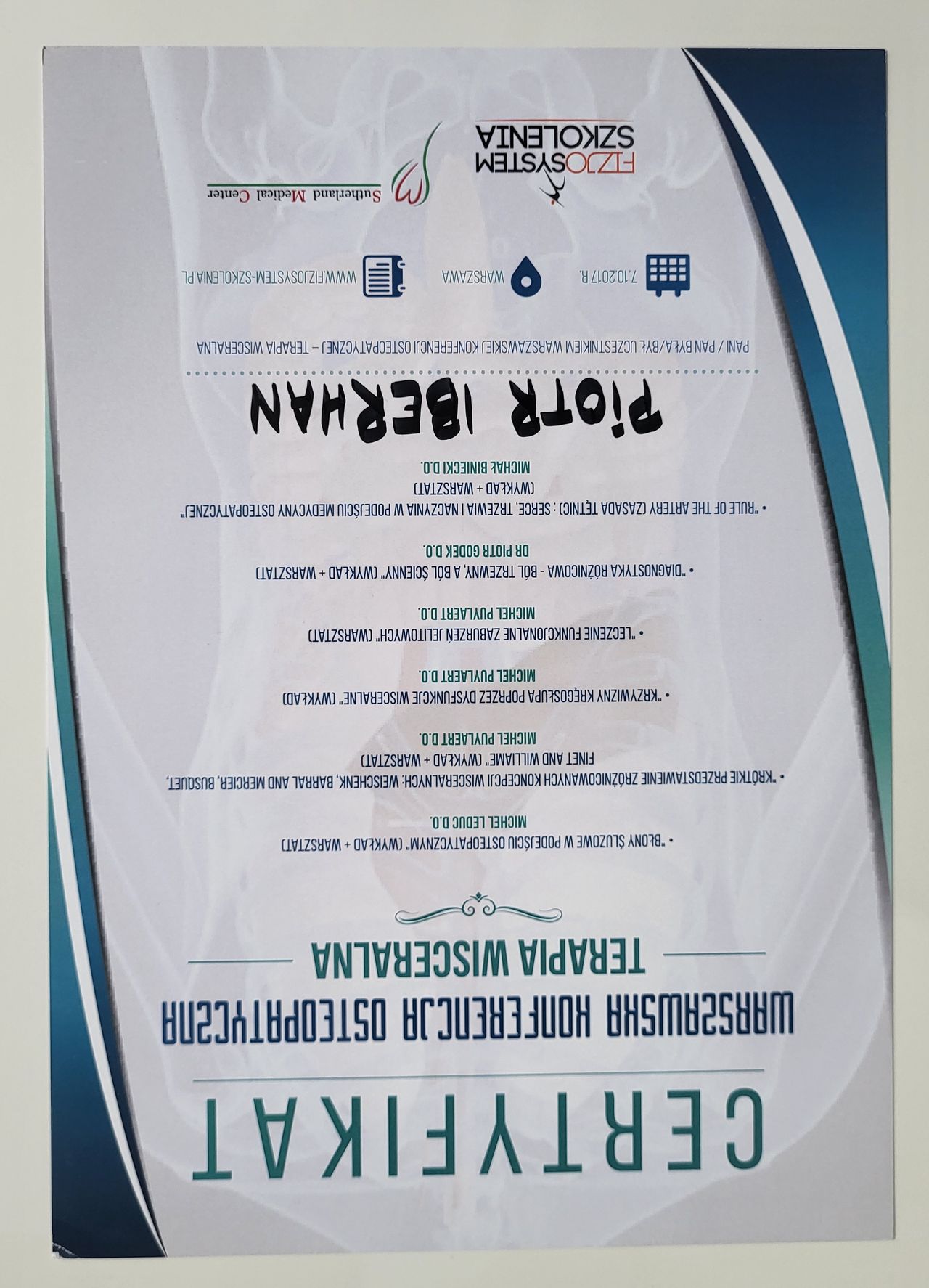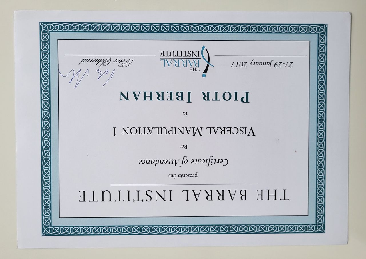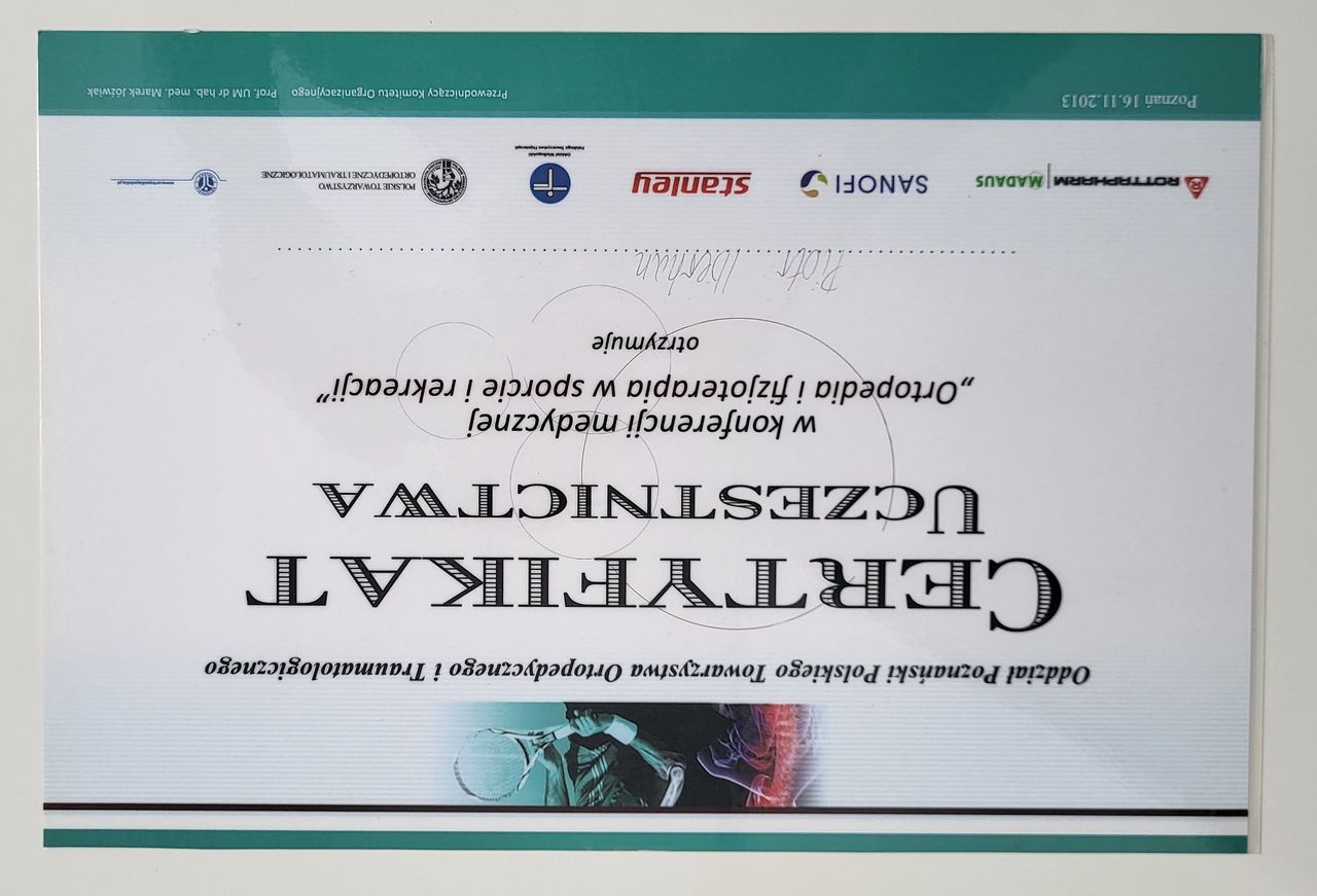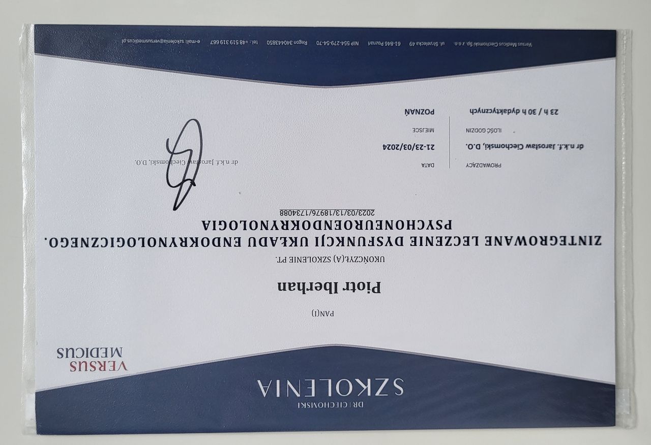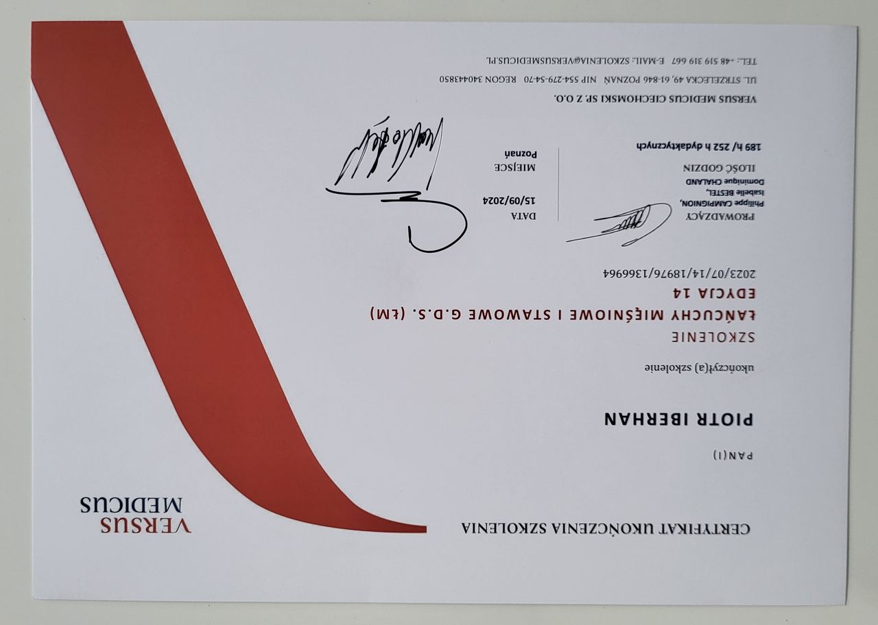 Poza specjalistycznymi szkoleniami w 2025r. zdecydowałem się na kolejny krok w mojej praktyce zawodowej i rozpocząłem studia na Akademii Osteopatii w Poznaniu.