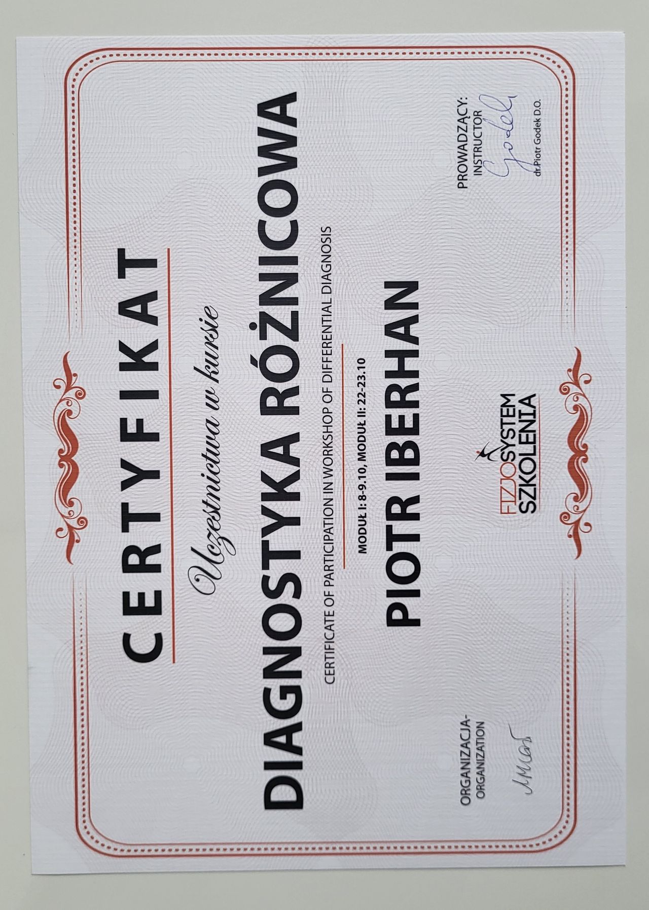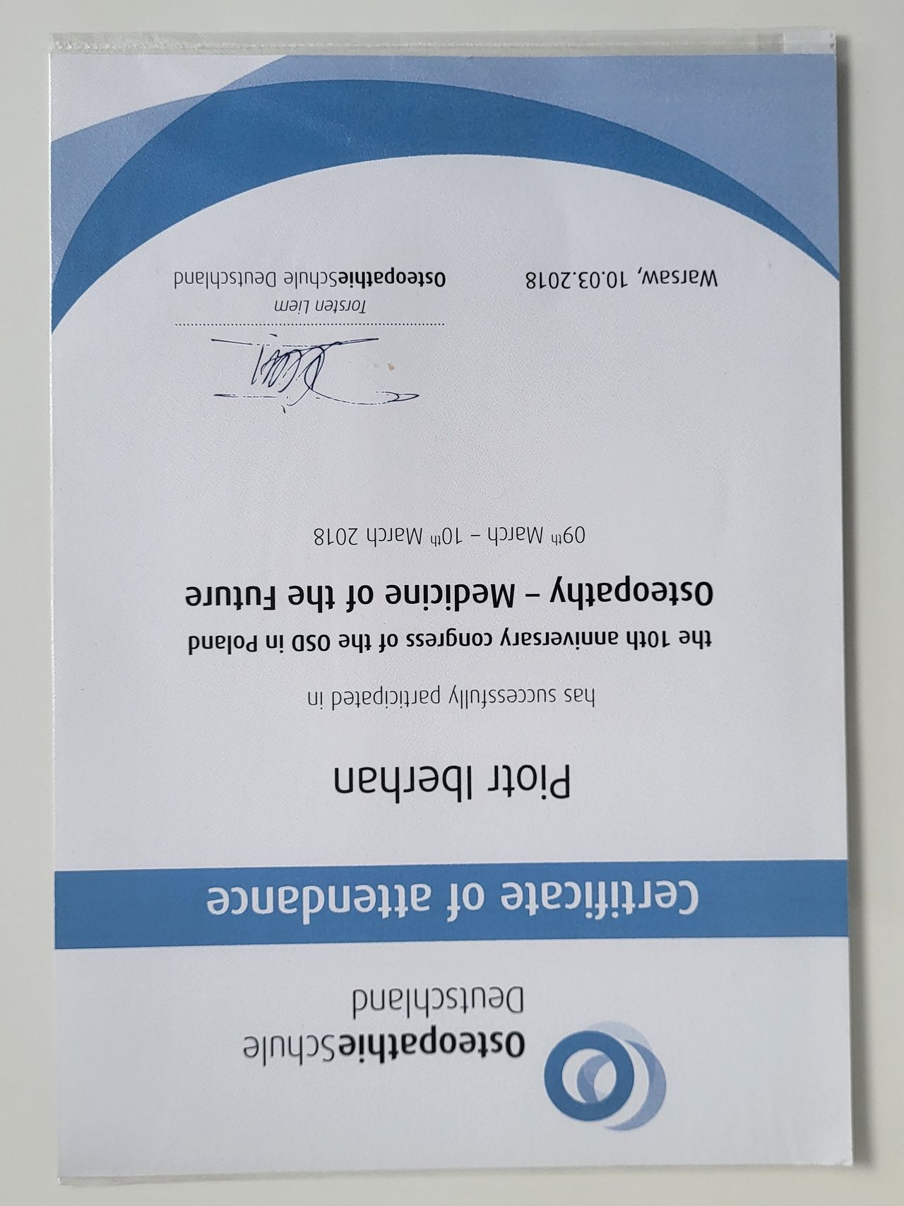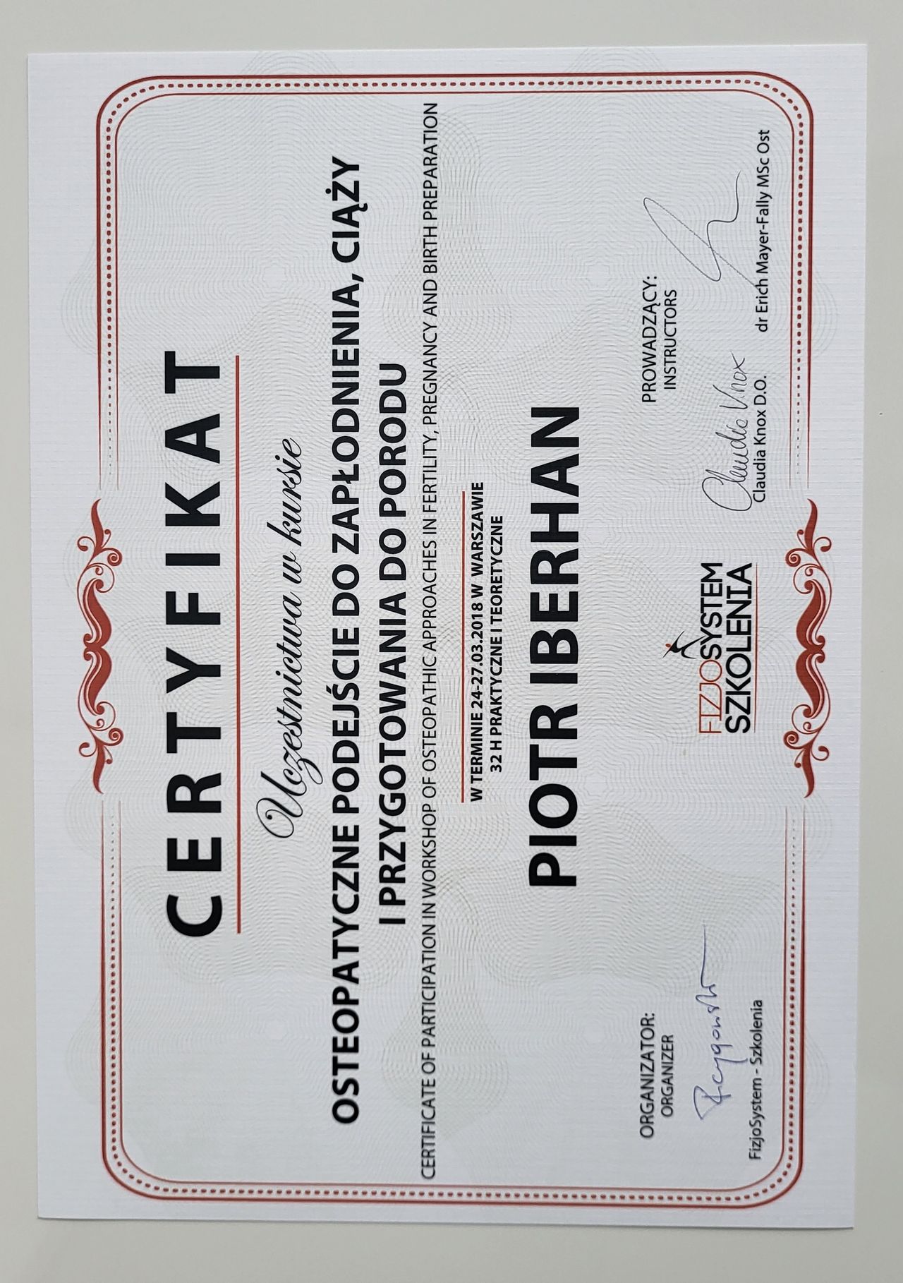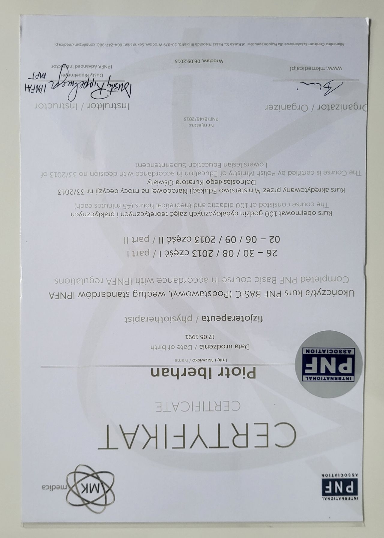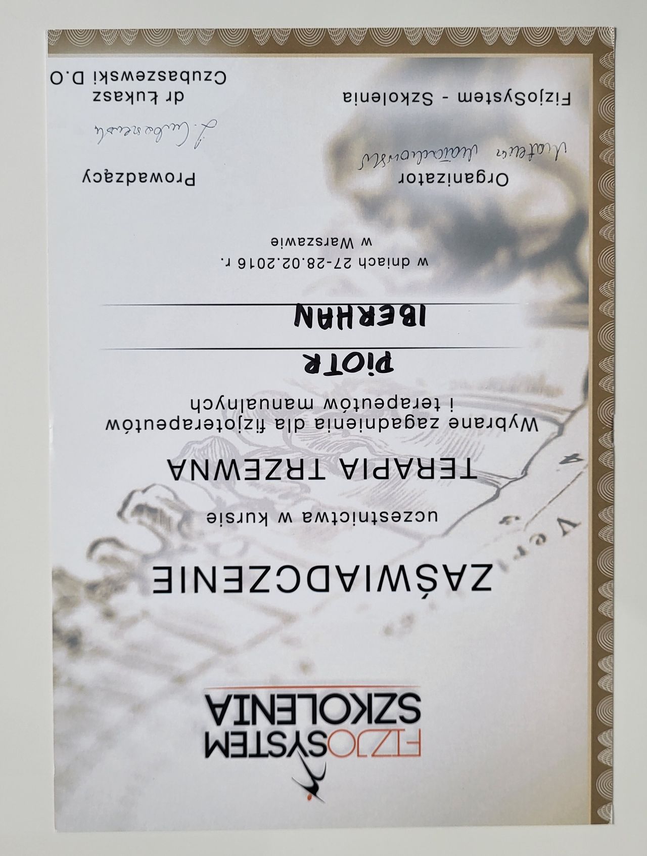 Poza specjalistycznymi szkoleniami w 2025r. zdecydowałem się na kolejny krok w mojej praktyce zawodowej i rozpocząłem studia na Akademii Osteopatii w Poznaniu.