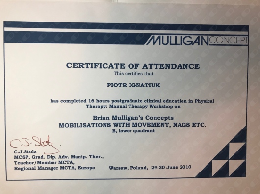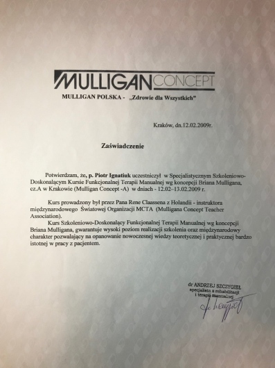 • Terapia funkcjonalna: Certyfikat Mulligan Concept