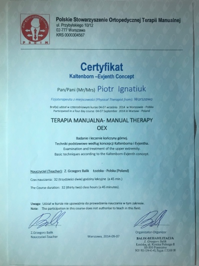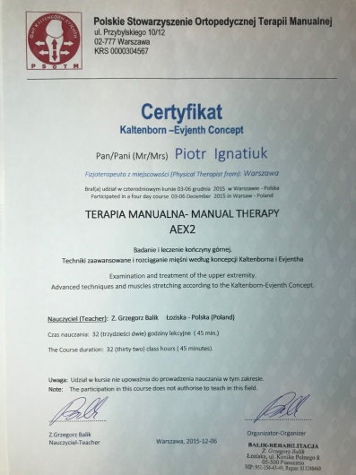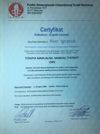 • Terapia manualna: Certyfikat Kaltenborn – Evjenth Concept