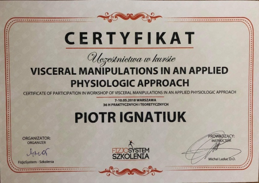 • Viceral Manipulations in an Applied Physiologic Approach (certyfikat)