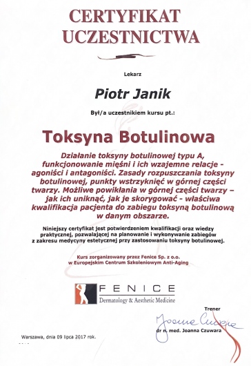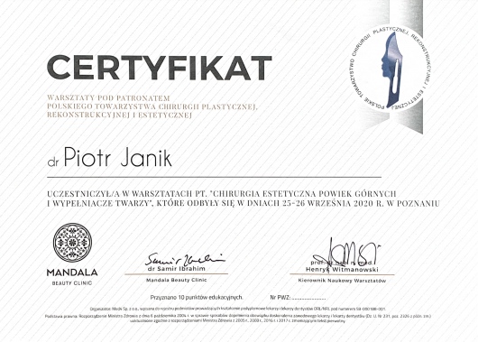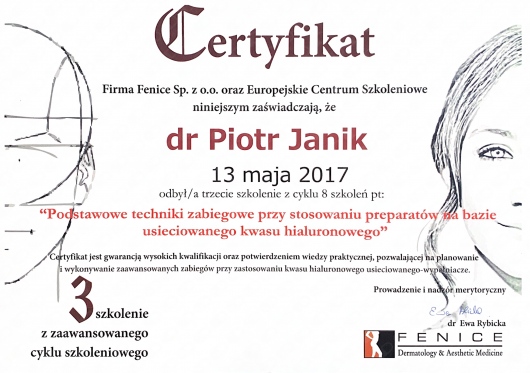 Serdecznie polecam Pana Doktora. Da się wyczuc, że bardzo lubi swoją pracę i jest w nią bardzo zaangażowany. Bardzo dobry kontakt poza wizytami. Odp na każdy tel I wiadomość,ale przede wszystkim jest mistrzem w tym ,co robi. Miałam wykonywany lifting brwi i policzków. Jestem bardzo, ale to bardzo zadowolona i z pewnością polece dr Janika każdemu, kto będzie potrzebował pomocy chirurga plastycznego