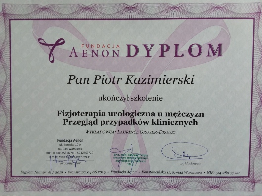 Jestem po usunięciu prostaty. Wszystkie ćwiczenia wykonywane z udziałem Pana Piotra odnoszą bardzo dobry skutek. Jest świetnym specjalistą o ogromnej wiedzy, komunikatywny, bardzo cierpliwy i umiejący słuchać pacjenta. Podczas pracy z pacjentem jest bardzo delikatny. Potrafi pomóc w bardzo trudnych przypadkach. Serdecznie polecam Pana Piotra Kazimierskiego.