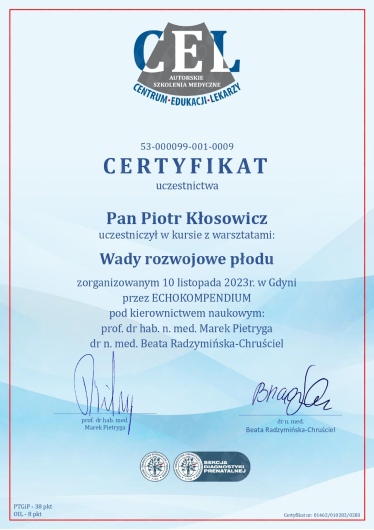 Jaki jest zakres porad oferowanych przez Piotr Kłosowicz?Piotr Kłosowicz to ginekolog. Na podstawie swojego doświadczenia i wykształcenia Piotr Kłosowicz oferuje usługi takie jak: konsultacja ginekologiczna, konsultacja ginekologiczna + USG + cytologia, założenie wkładki domacicznej Kyleena, założenie wkładki domacicznej Levosert, założenie implantu antykoncepcyjnego Implanon, usunięcie wkładki domacicznej, USG doppler, USG I trymestru, USG II trymestru.