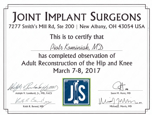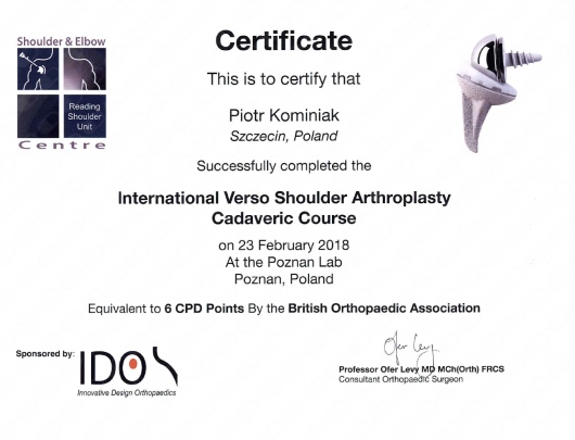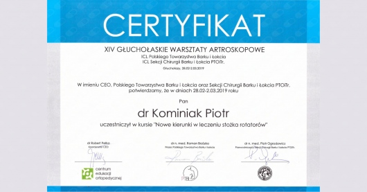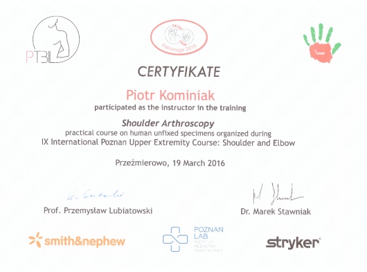 Polskiego Towarzystwa Artroskopowego oraz Polskiego Towarzystwa Barku i Łokcia,