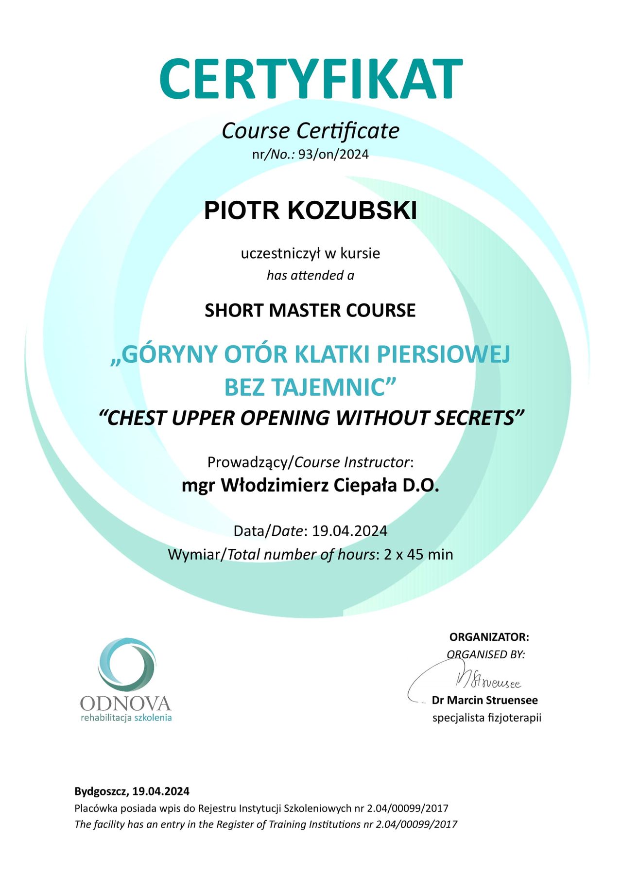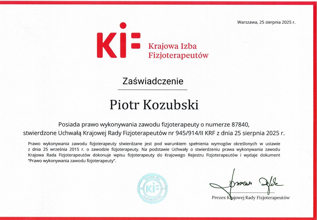 Dziękuję za profesjonalne, ale jednocześnie bardzo życzliwe podejście, dzięki Pana pracy wracam do sprawności dużo szybciej, niż się spodziewałem.