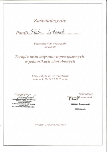 • Fizjo-Sport Piotr Luterek • terapia manualna (kolejna wizyta) •