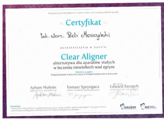 (głównie Invisalign), wyjmowanych oraz miniimplantów ortodontycznych. Dysponuję skanerem Itero.