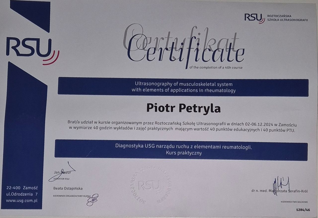 Jaki jest zakres porad oferowanych przez Piotr Petryla?Piotr Petryla to w trakcie specjalizacji (ortopeda). Na podstawie swojego doświadczenia i wykształcenia Piotr Petryla oferuje usługi takie jak: konsultacja ortopedyczna, konsultacja ortopedyczna + USG.